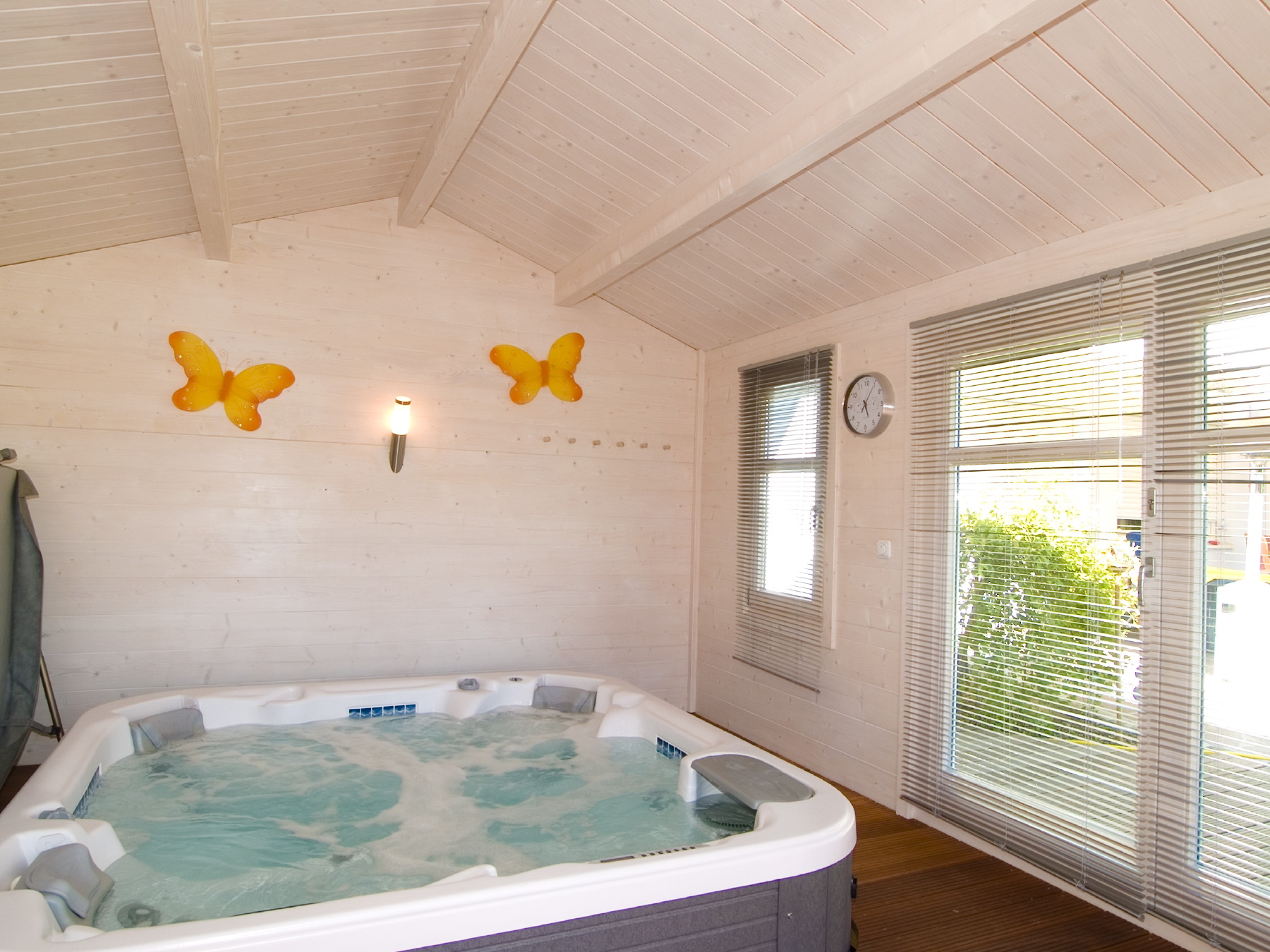 | Bildbeschreibung: Wohlfühlen im Whirlpoolhaus von Blockhausbau Hummel. Foto: Blockhausbau Hummel Abdruck honorarfrei, Beleg an: Jensen media GmbH, Hemmerlestraße 4, 87700 Memmingen, info@jensen-media.de, Telefon 08331/991880 |