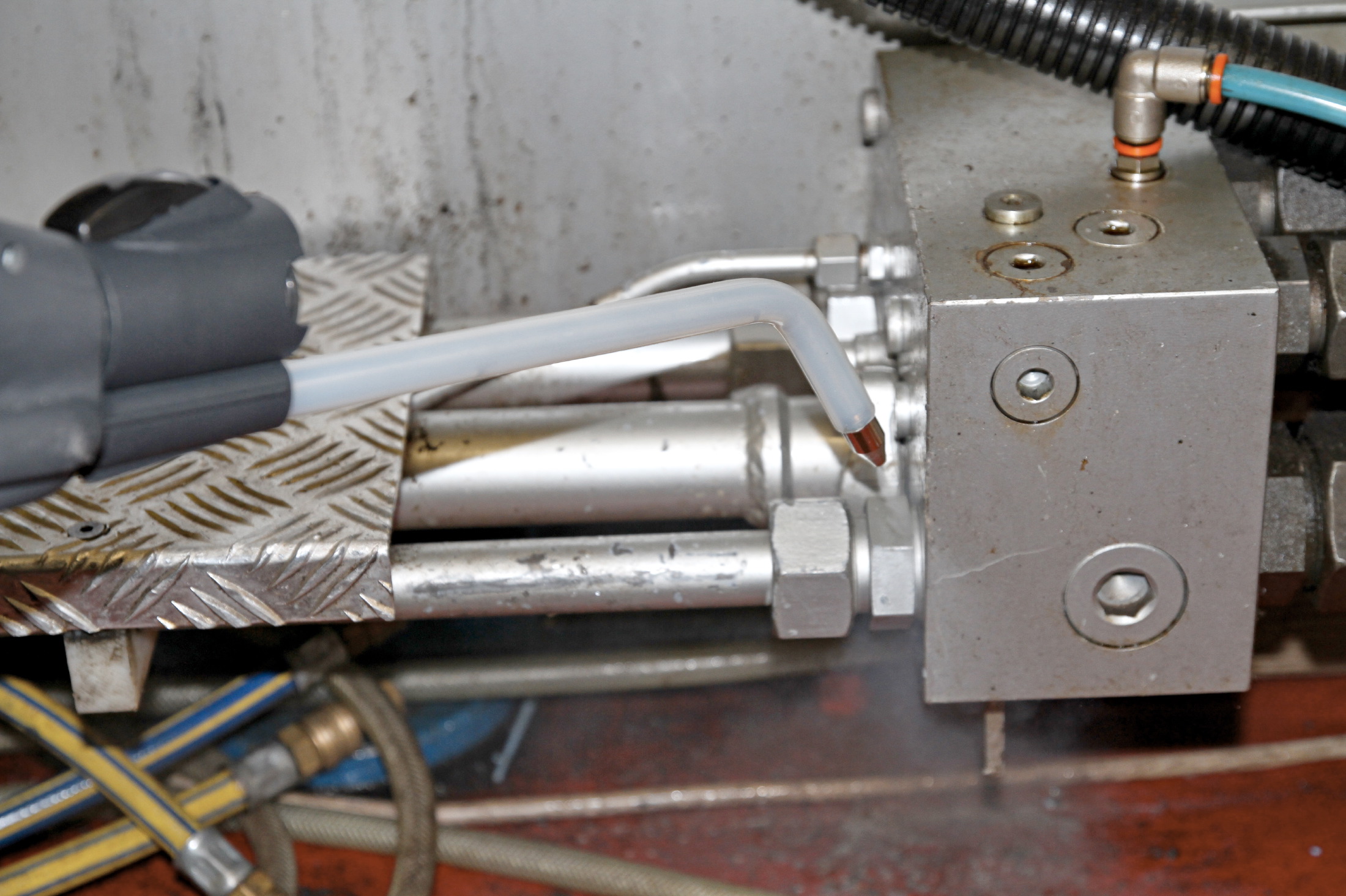 | Bildbeschreibung: Das innovative Dampfsaugsystem BlueEvoution XL der beam GmbH aus Altenstadt. Hier bei der Maschinenreinigung. Foto: beam GmbH Redaktionelle Verwendung erlaubt, Abdruck honorarfrei, Beleg an: Jensen media, Hemmerlestraße 4, 87700 Memmingen, Telefon 08331/991880, info@jensen-media.de |