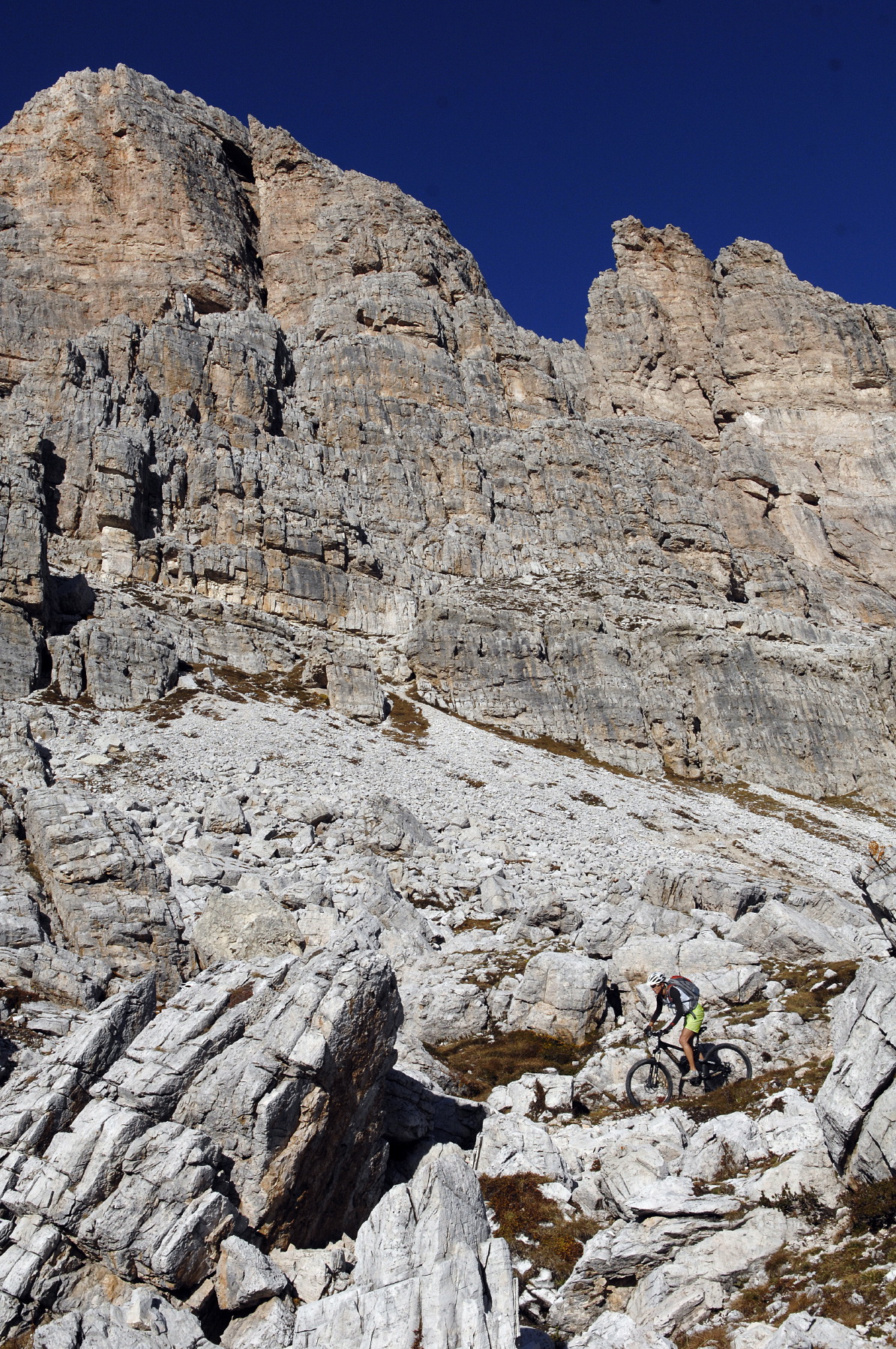 Bildbeschreibung: Mountainbiken bei Cortina d'Ampezzo, hier am Averau. Foto: Stanciu Redaktionelle Verwendung erlaubt, Achtung: Der Fotograf muss unbedingt erwähnt werden, Abdruck honorarfrei, Beleg an: Jensen media, Hemmerlestraße 4, 87700 Memmingen, Telefon 08331/991880, info@jensen-media.de |