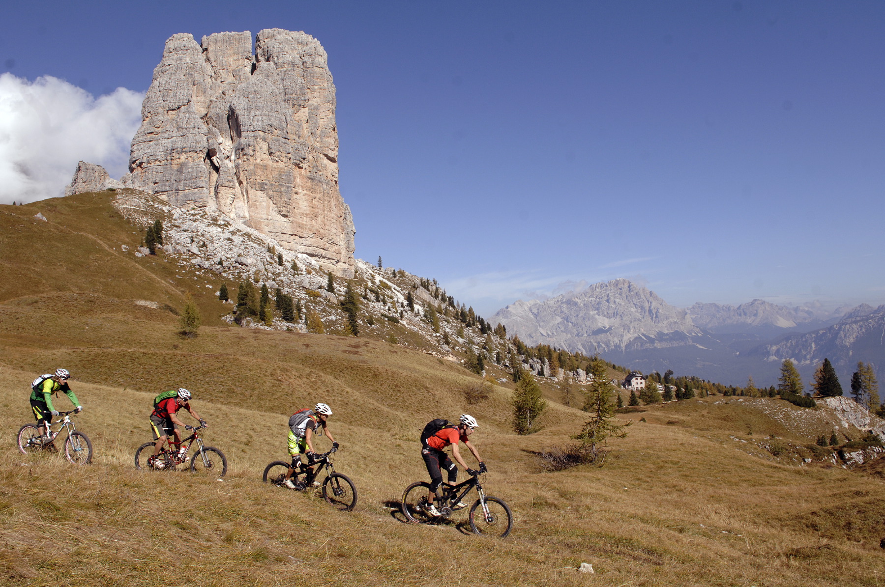 Bildbeschreibung: Mountainbiken bei Cortina d'Ampezzo, hier am Giau. Foto: Stanciu Redaktionelle Verwendung erlaubt, Achtung: Der Fotograf muss unbedingt erwähnt werden, Abdruck honorarfrei, Beleg an: Jensen media, Hemmerlestraße 4, 87700 Memmingen, Telefon 08331/991880, info@jensen-media.de |