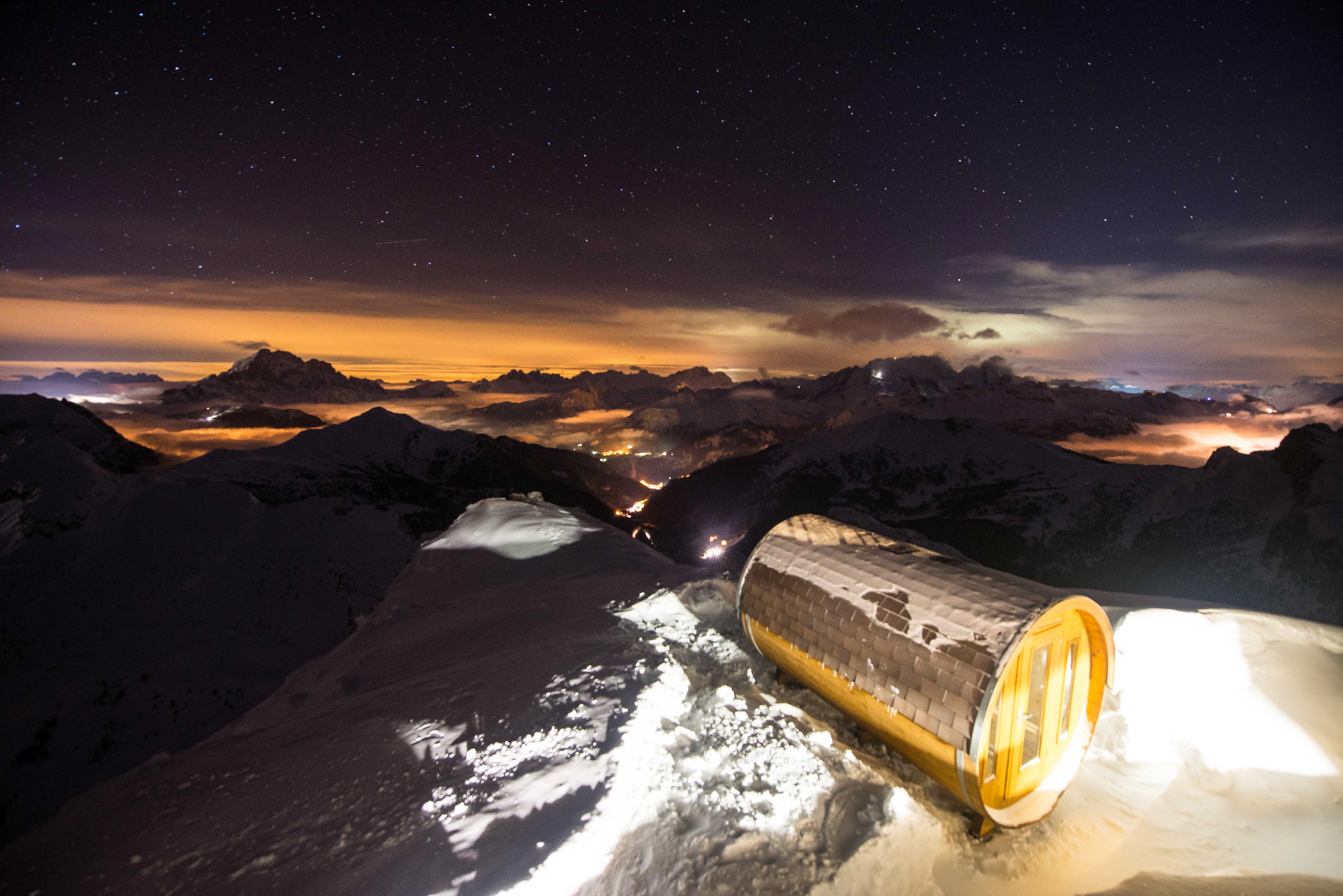 | Bildbeschreibung: Die neue Sauna am Rifugio Lagazuoi ist die höchstgelegene Sauna in den Dolomiten, in 2752 Metern Höhe. Foto: Guido Pompanin Redaktionelle Verwendung erlaubt, Achtung: Der Fotograf muss unbedingt erwähnt werden, Abdruck honorarfrei, Beleg an: Jensen media, Hemmerlestraße 4, 87700 Memmingen, Telefon 08331/991880, info@jensen-media.de |