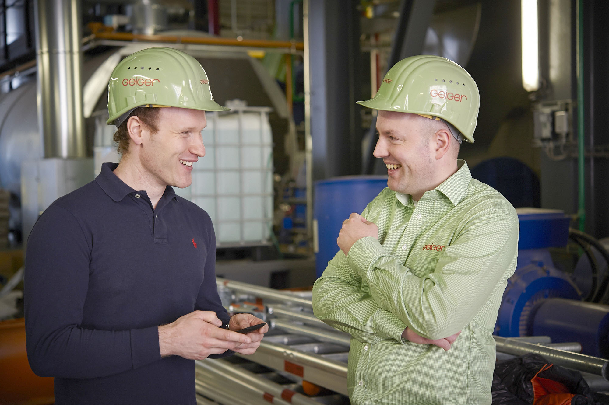 | Bildbeschreibung: Viel Freude an der Energiewende: Alexander Paul, Leiter des operativen Geschäfts der Geiger Energietechnik (rechts) und Projektingenieur Jan Seibert. Foto: Geiger Energietechnik Redaktionelle Verwendung erlaubt, Abdruck honorarfrei, Beleg an: Jensen media, Hemmerlestraße 4, 87700 Memmingen, Telefon 08331/991880, info@jensen-media.de |