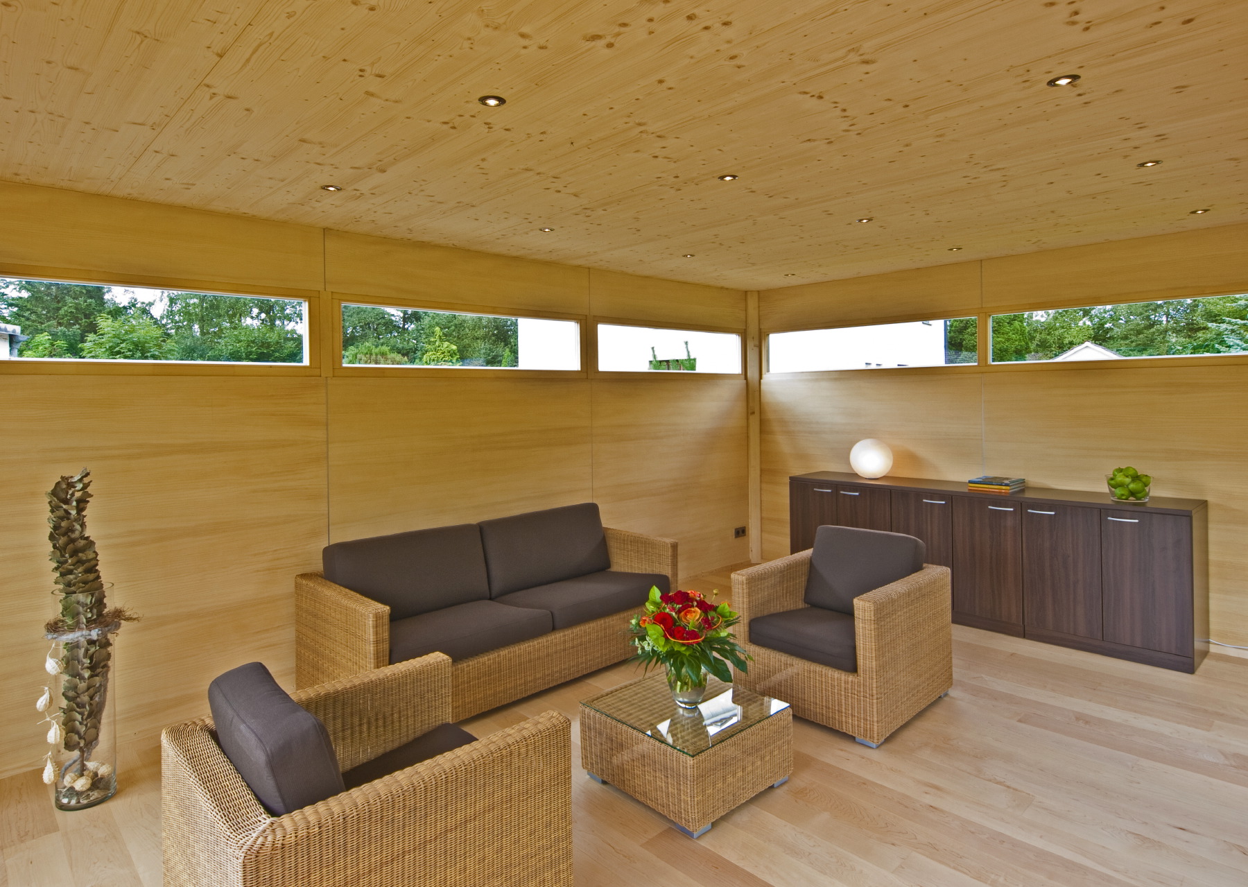 | Bildbeschreibung: „My Lounge“ von Blockhausbau Hummel bringt coole Eleganz in den Garten. Hier macht Relaxen Spaß. Foto: Blockhausbau Hummel Redaktionelle Verwendung erlaubt, Abdruck honorarfrei, Beleg an: Jensen media, Hemmerlestraße 4, 87700 Memmingen, Telefon 08331/991880, info@jensen-media.de |
