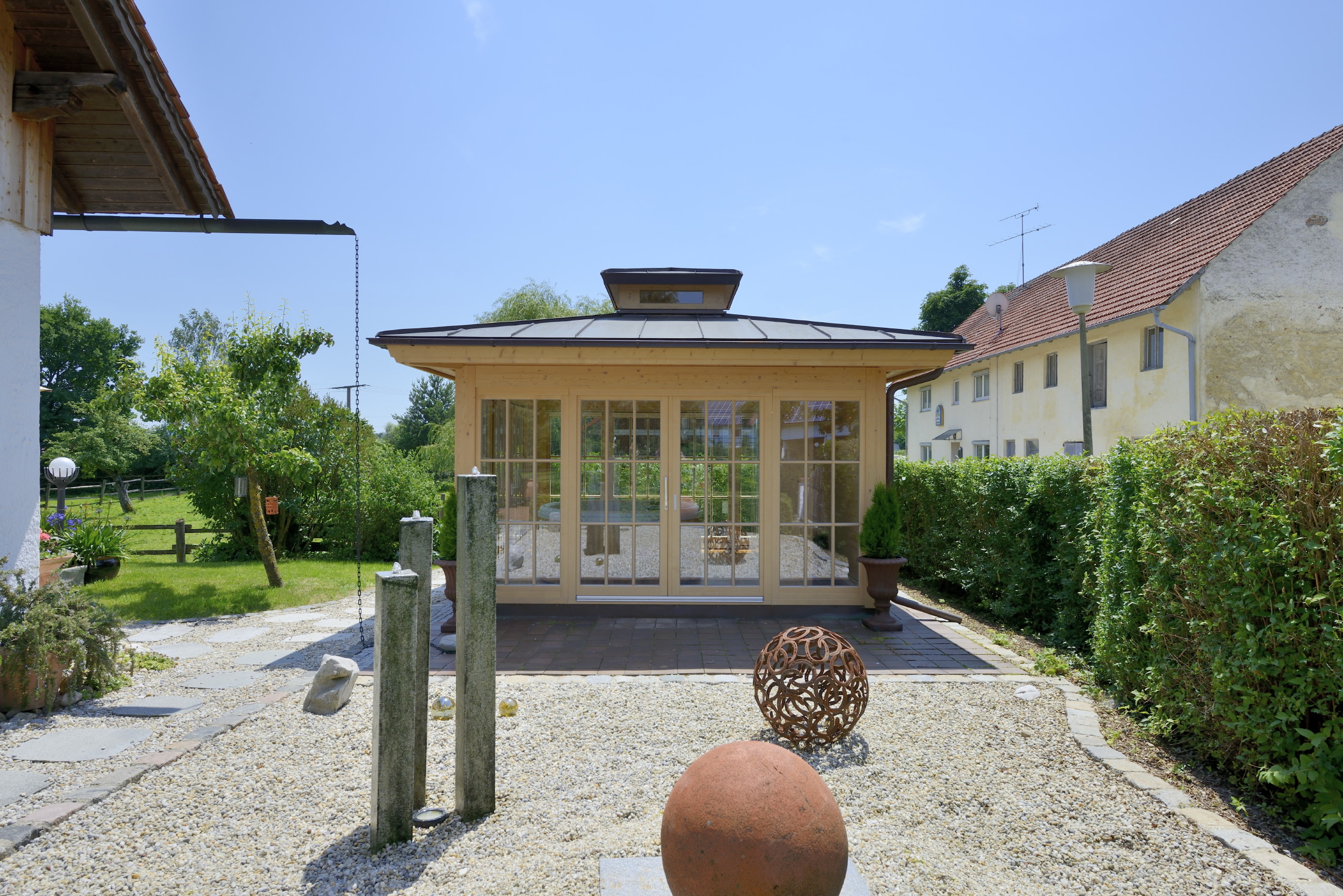 | Bildbeschreibung: Der Spa-Bereich im eigenen Garten: Whirlpool-Häuser von Blockhausbau Josef Hummel machen’s möglich. Foto: Blockhausbau Hummel Abdruck honorarfrei, Beleg an: Jensen media GmbH, Hemmerlestraße 4, 87700 Memmingen, info@jensen-media.de, Telefon 08331/991880 |