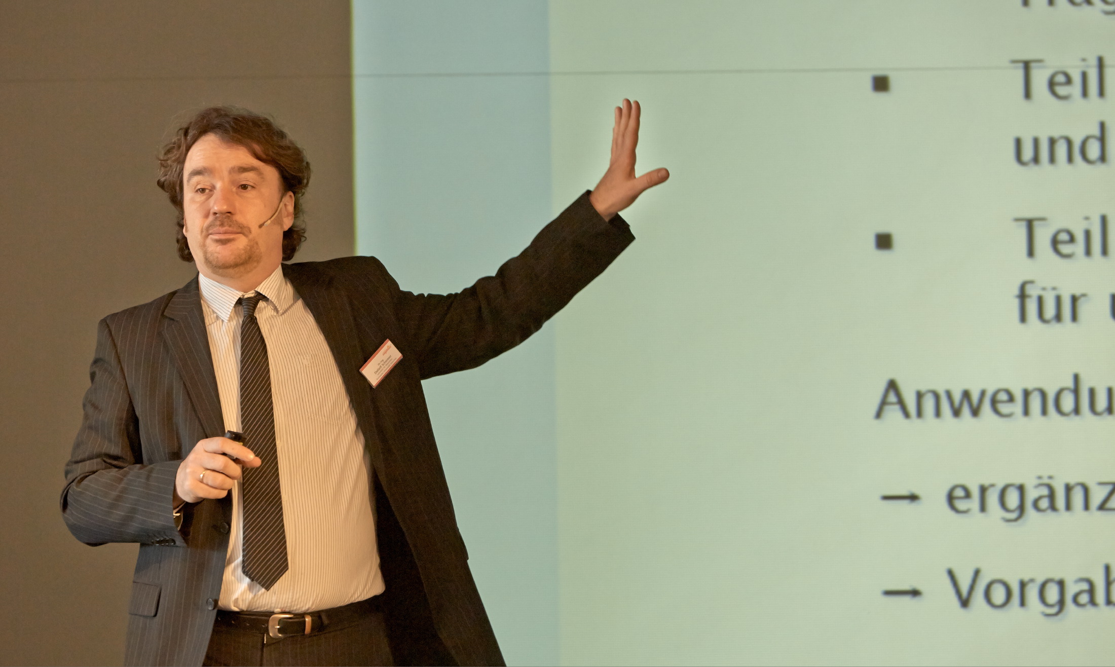 | Bildbeschreibung: Mauerwerkstag 2013 in Memmingen. Dr. Detleff Schermer von der TU München knackte den Eurocode 6. Foto. Ziegelwerk Klosterbeuren Redaktionelle Verwendung erlaubt, Abdruck honorarfrei, Beleg an: Jensen media, Hemmerlestraße 4, 87700 Memmingen, Telefon 08331/991880, info@jensen-media.de |