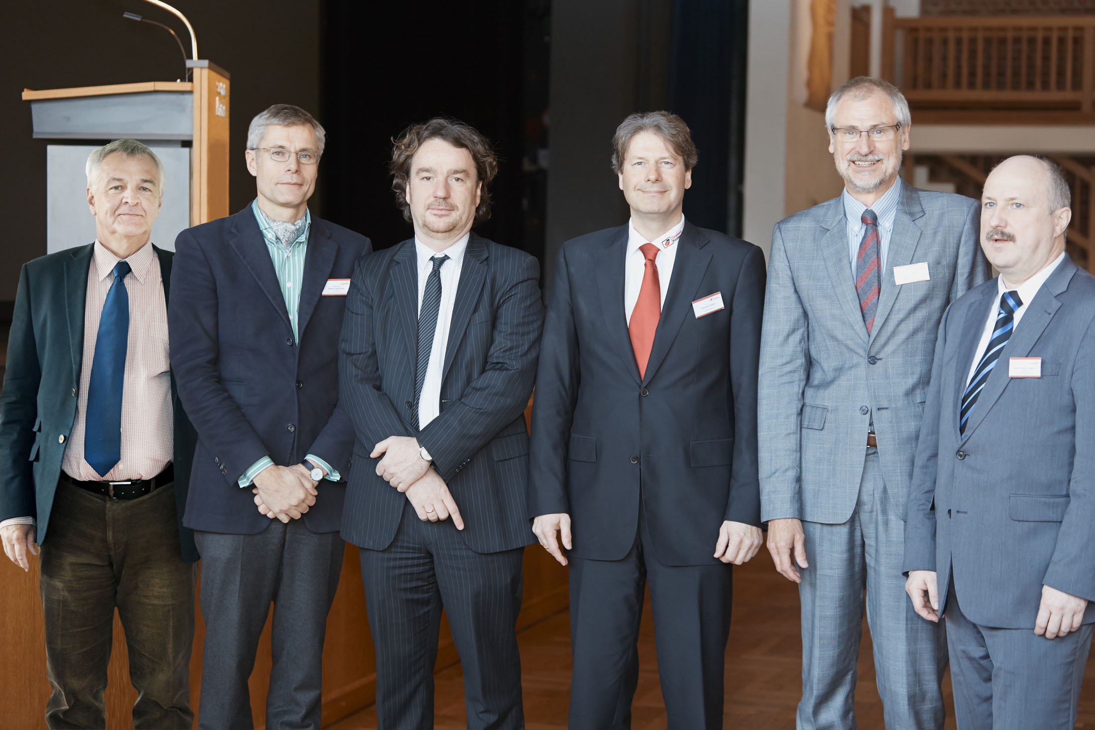 | Bildbeschreibung: Mauerwerkstag 2013 in Memmingen. Die Referenten und Organisatoren, von links: Prof. Dr. Axel Wirth, Stefan Horschler, Dr. Detleff Schermer, Thomas Thater, Hans R. Peters und Hans-Dietrich Hegner. Foto: Ziegelwerk Klosterbeuren Redaktionelle Verwendung erlaubt, Abdruck honorarfrei, Beleg an: Jensen media, Hemmerlestraße 4, 87700 Memmingen, Telefon 08331/991880, info@jensen-media.de |