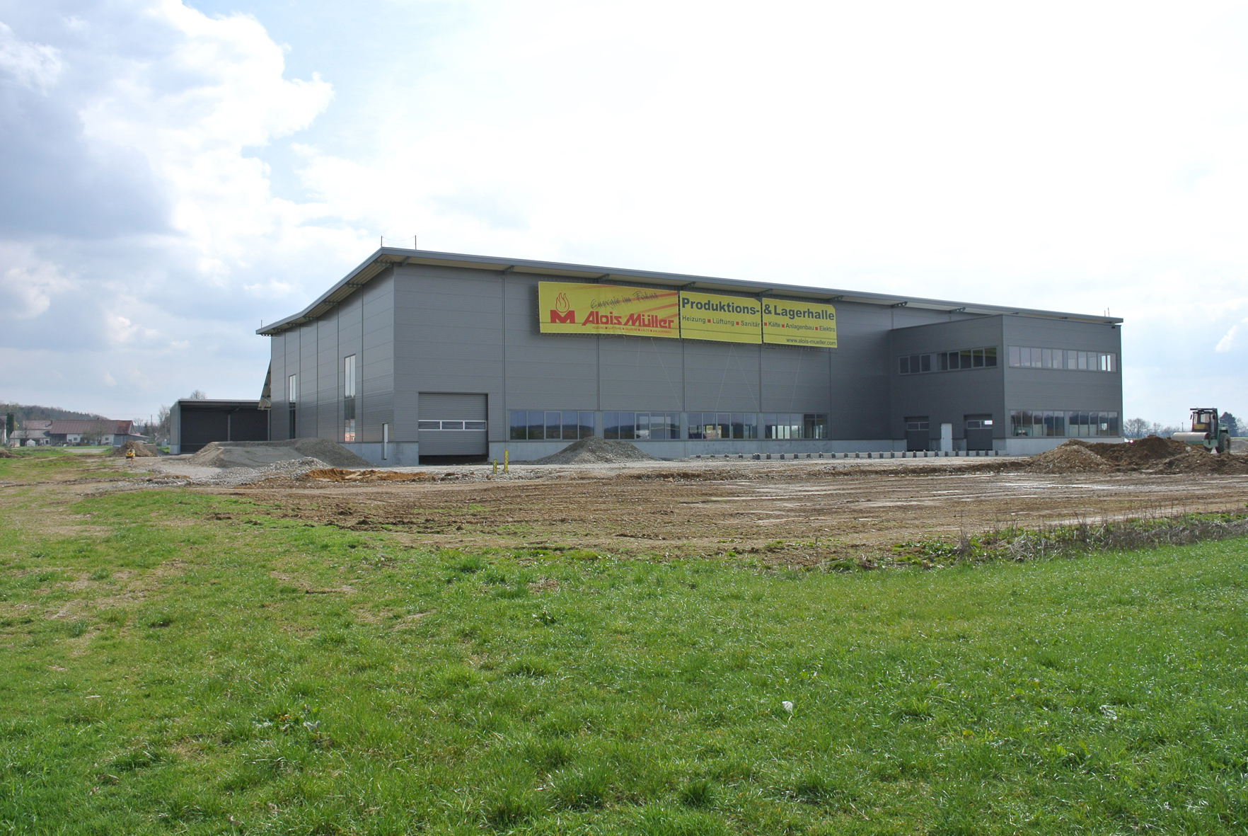 Bildbeschreibung: Die Alois Müller GmbH aus Memmingen errichtet in Ungerhausen im Unterallgäu die erste energieautarke Produktions- und Lagerhalle. Foto: Alois Müller Redaktionelle Verwendung erlaubt, Abdruck honorarfrei, Beleg an: Jensen media, Hemmerlestraße 4, 87700 Memmingen, Telefon 08331/991880, info@jensen-media.de |