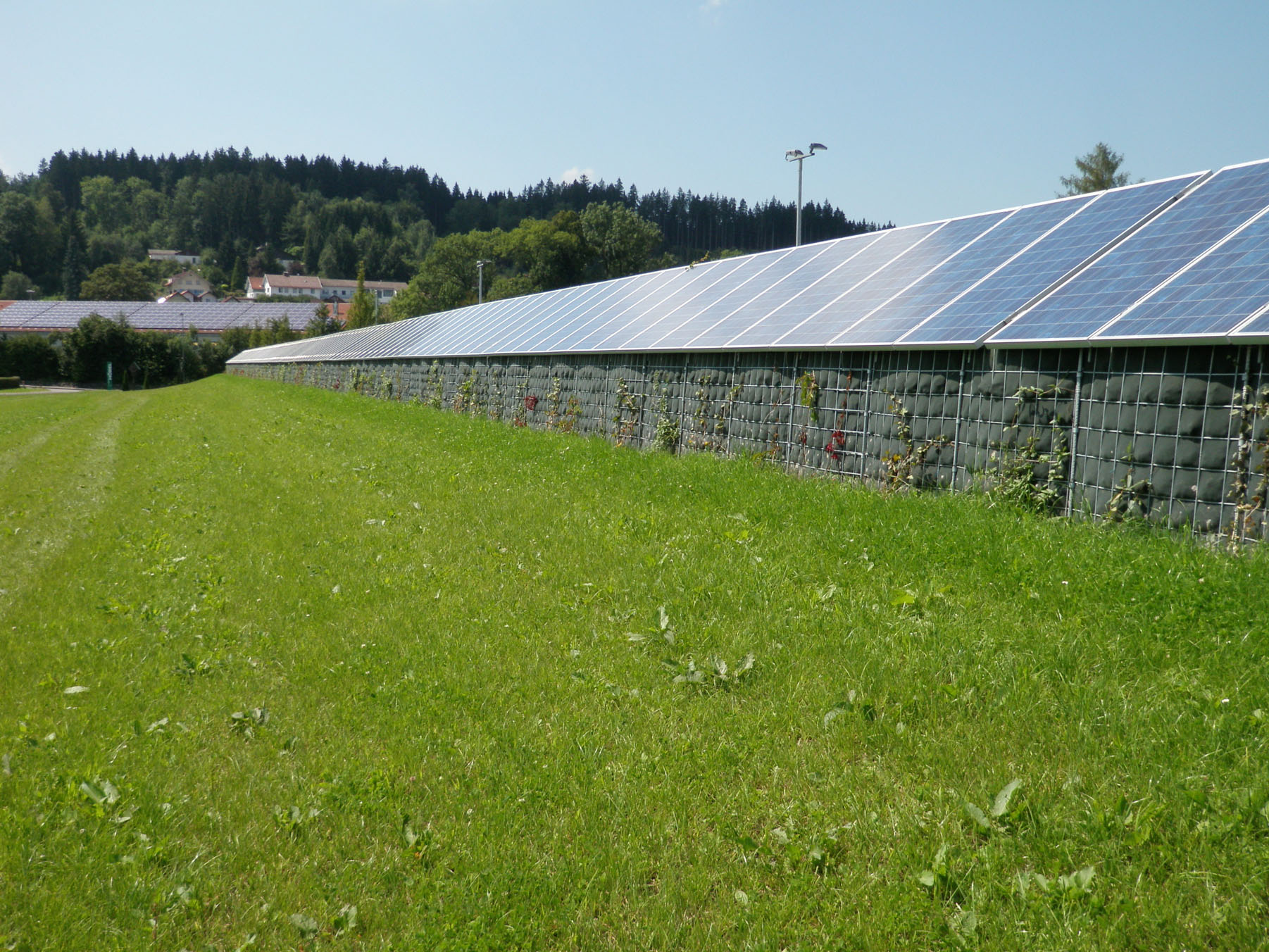 | Bildbeschreibung: Die Rau Geosystem Süd GmbH bietet als weltweit erster Hersteller überhaupt ökologische Lärmschutzwände mit Energiegewinnungsfunktion an. Unser Foto zeigt eine im Allgäu installierte Lärmschutzwand mit integrierten Photovoltaik-Panels. Foto: Rau Geosystem Süd GmbH Abdruck für redaktionelle Verwendung honorarfrei, Beleg erbeten an: Jensen media GmbH, Hemmerlestraße 4, 87700 Memmingen, Germany, Telefon +498331991880, info@jensen-media.de |