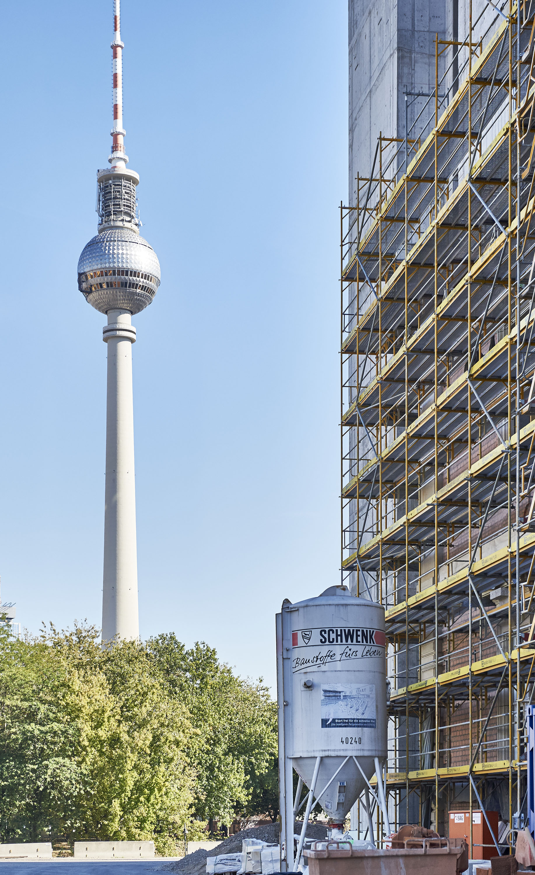 | Bildbeschreibung: Silo meets Fernsehturm. Der Trasskalkmörtel TM 5 HS der Schwenk Putztechnik ist ein steter Nachbar des Berliner Wahrzeichens. Foto: Stephan Falk/Schwenk Putztechnik Redaktionelle Verwendung erlaubt, Abdruck honorarfrei, Beleg an: Jensen media, Hemmerlestraße 4, 87700 Memmingen, Telefon 08331/991880, info@jensen-media.de | |