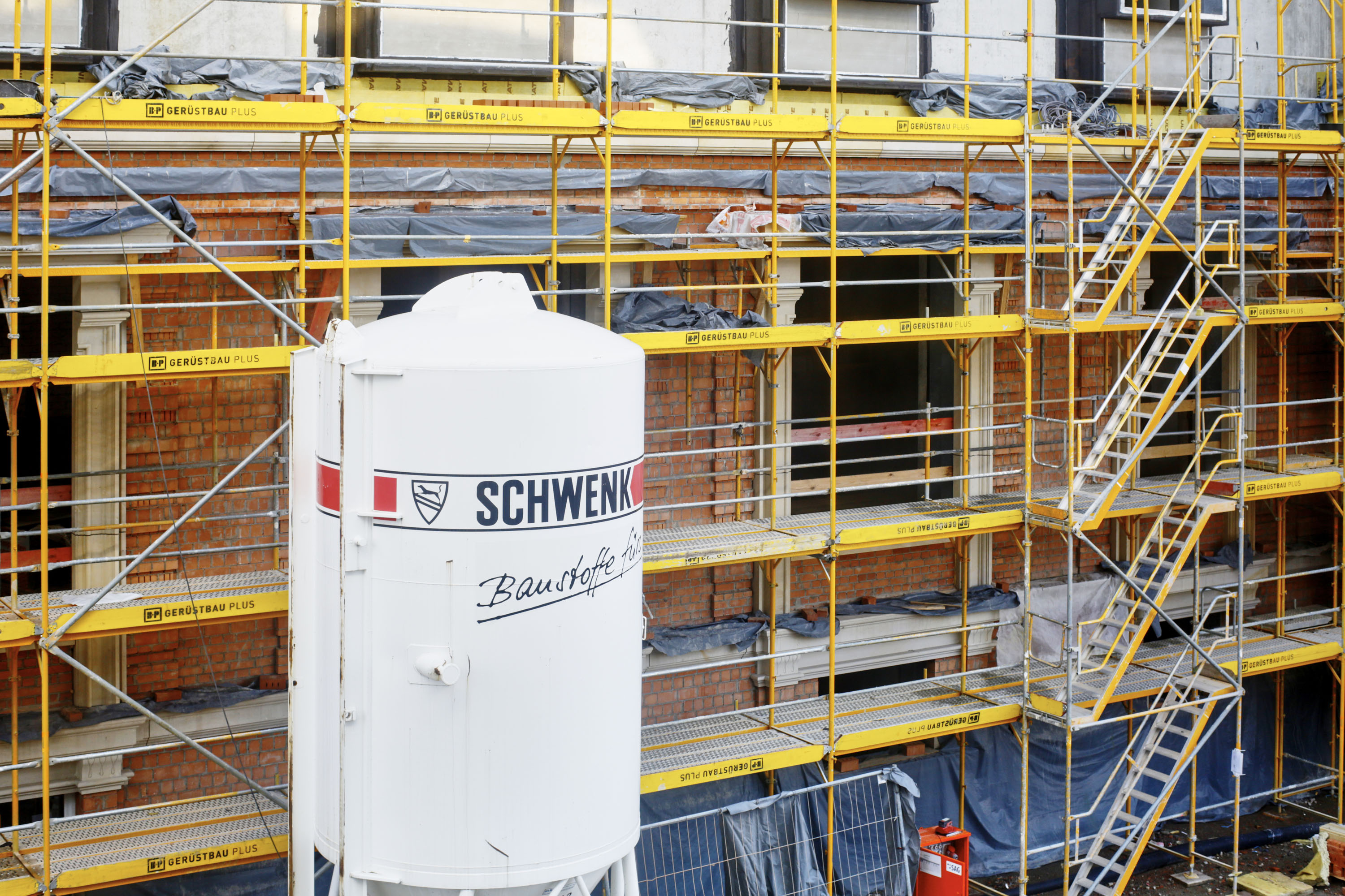 | Bildbeschreibung: Kräne und Gerüste bestimmen das Bild auf der Großbaustelle. Foto: Stephan Falk/Schwenk Putztechnik Redaktionelle Verwendung erlaubt, Abdruck honorarfrei, Beleg an: Jensen media, Hemmerlestraße 4, 87700 Memmingen, Telefon 08331/991880, info@jensen-media.de | |