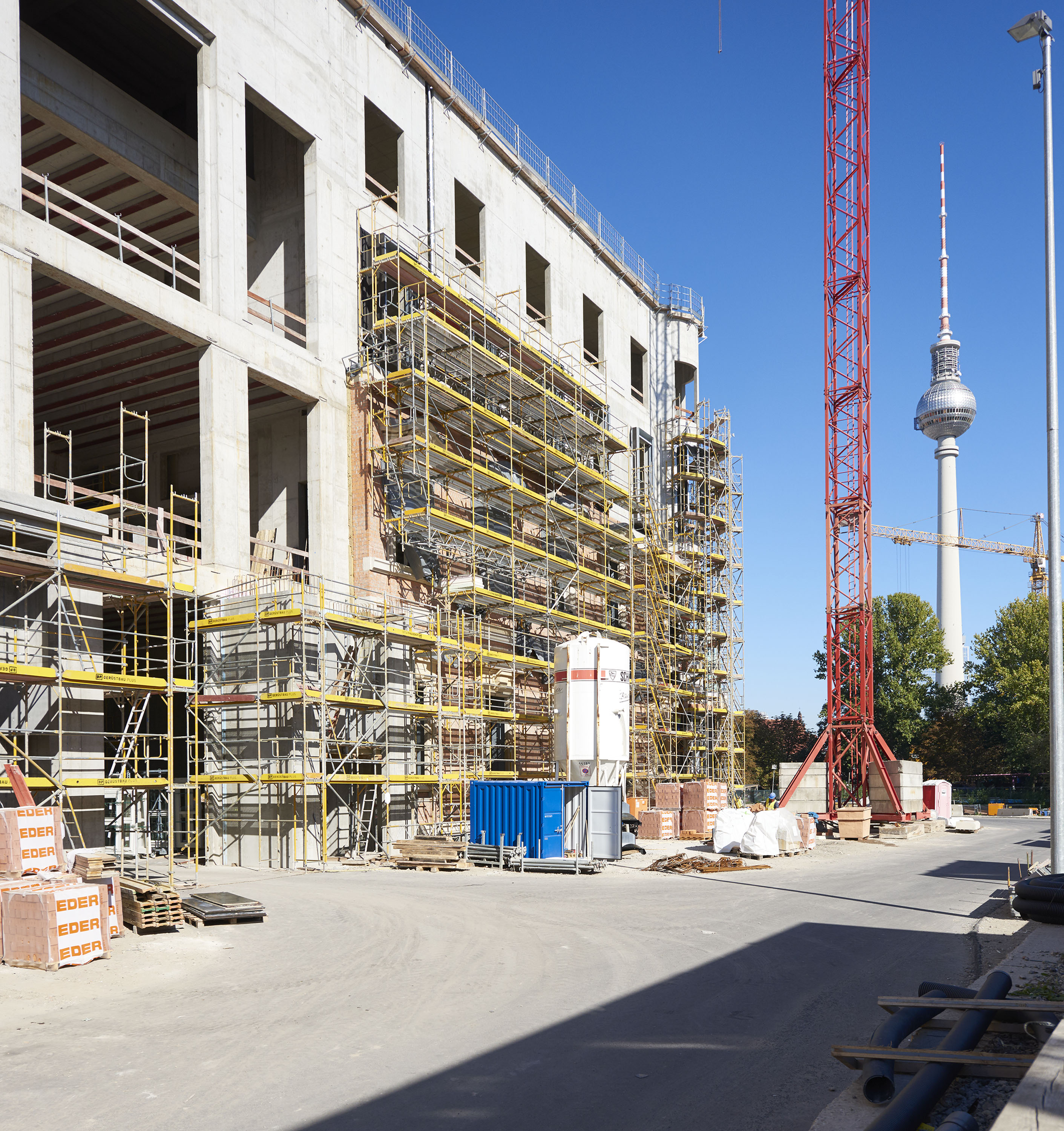 | Bildbeschreibung: Auch am Portal I und an den Rücklagenfassaden im Süden kommt der Trasskalkmörtel TM 5 HS von der Schwenk Putztechnik zum Einsatz. Foto: Stephan Falk/Schwenk Putztechnik Redaktionelle Verwendung erlaubt, Abdruck honorarfrei, Beleg an: Jensen media, Hemmerlestraße 4, 87700 Memmingen, Telefon 08331/991880, info@jensen-media.de | |