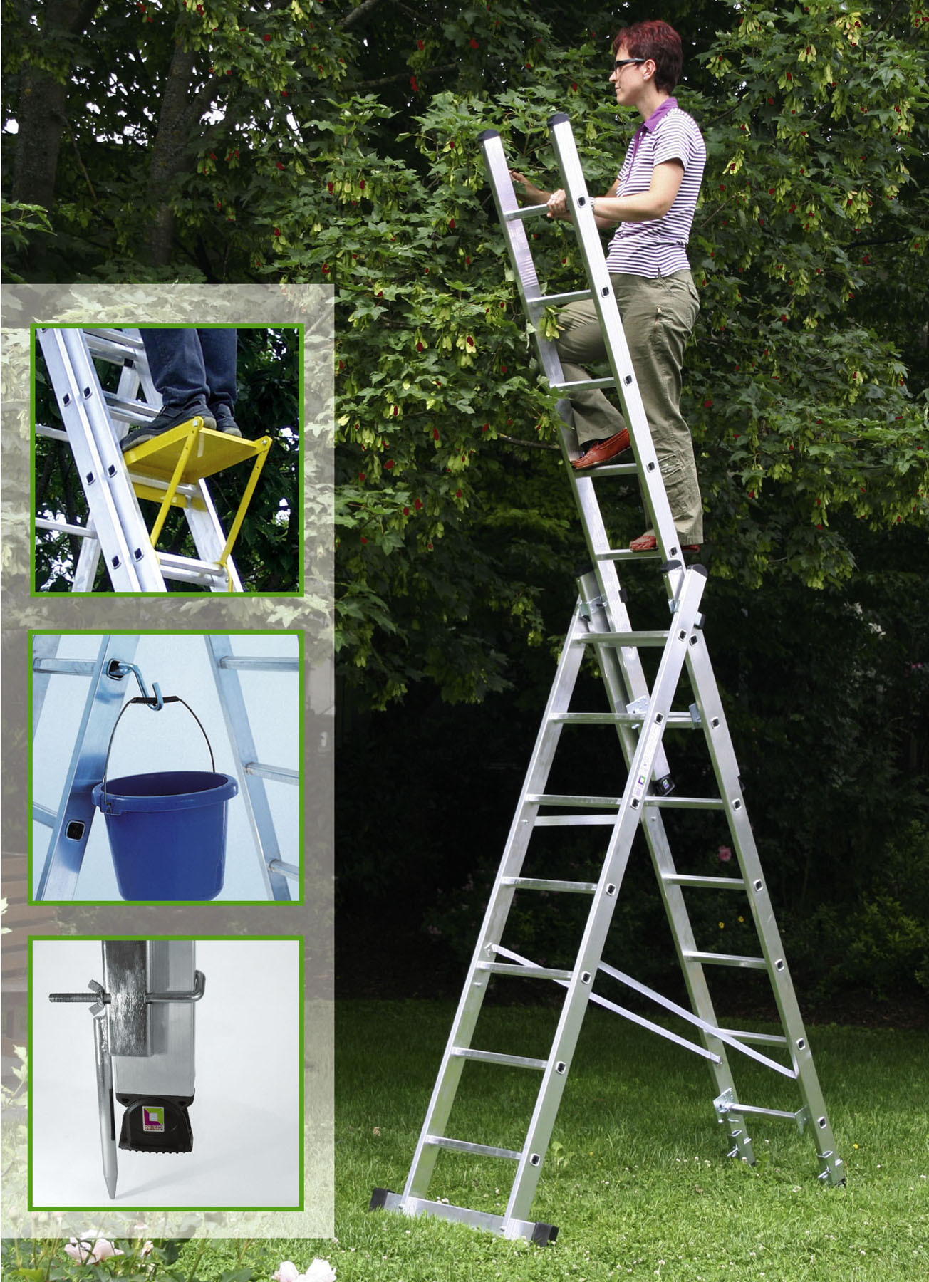 | Bildbeschreibung: Qualitätsleitern aus Deutschland sorgen für Sicherheit bei der Ernte. Nützliches Zubehör wie Einhängepodeste, Eimerhaken oder Erdspitzen erweitern die Einsatzmöglichkeiten und erhöhen den Unfallschutz. Foto: Günzburger Steigtechnik Abdruck honorarfrei, Beleg an: Jensen media, Hemmerlestraße 4, 87700 Memmingen, Telefon +49 (0)8331 991880, info@jensen-media.de |