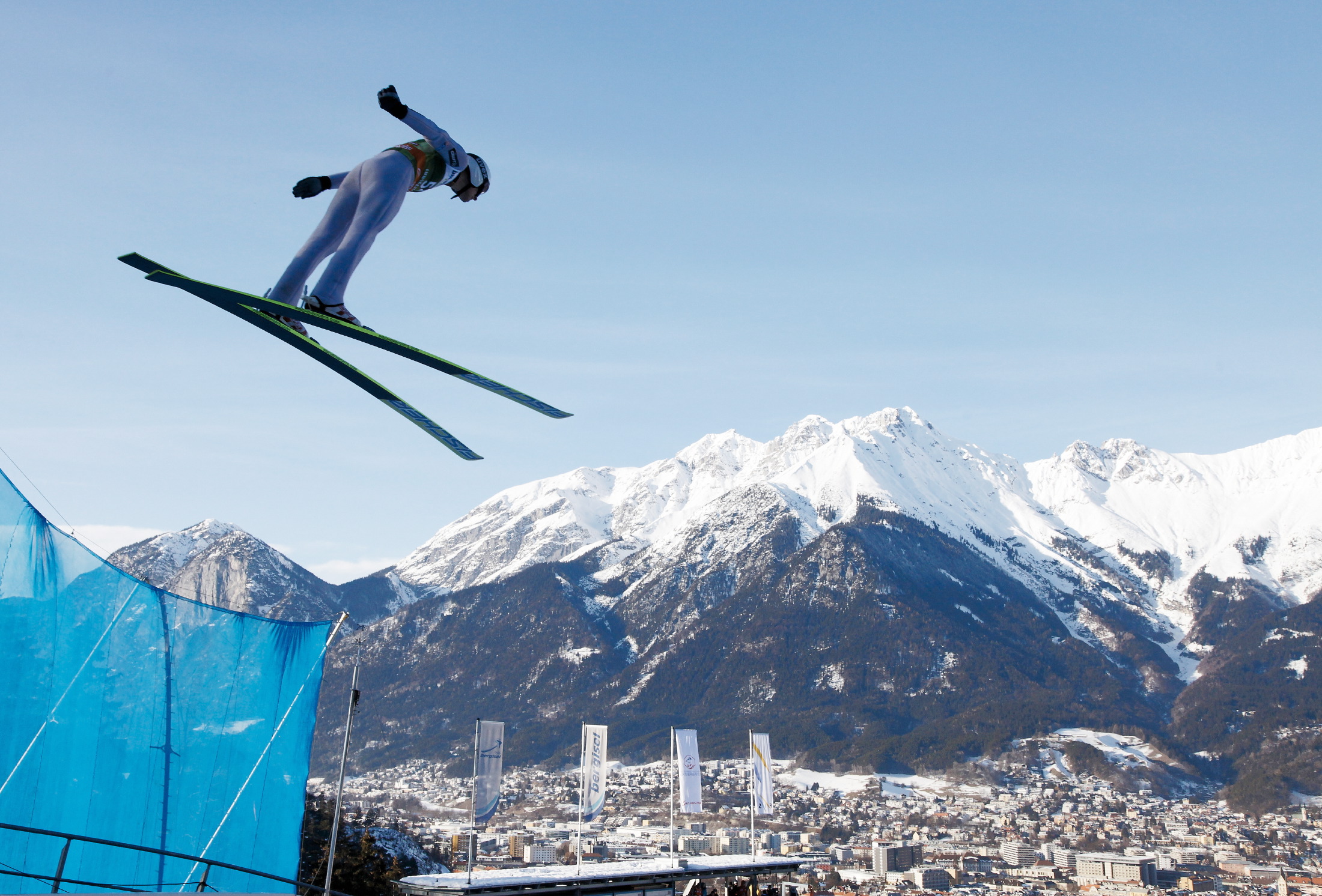 | Bildbeschreibung: Skispringer in Innsbruck Foto: Brigitte Waltl-Jensen, OK Vierschanzentournee, Redaktionelle Verwendung erlaubt, Abdruck honorarfrei, Beleg an: Pressestelle Vierschanzentournee, Hemmerlestraße 4, 87700 Memmingen, Germany, Telefon 08331/9918850, presse@vierschanzentournee.com |