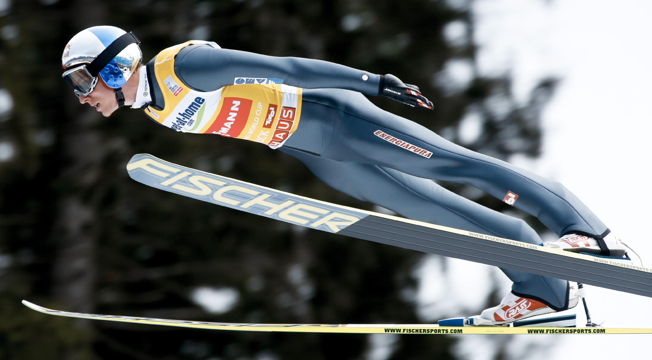 | Bildbeschreibung: Tourneesieger Gregor Schlierenzauer in Innsbruck Foto: Ingo Jensen, OK Vierschanzentournee, Redaktionelle Verwendung erlaubt, Abdruck honorarfrei, Beleg an: Pressestelle Vierschanzentournee, Hemmerlestraße 4, 87700 Memmingen, Germany, Telefon 08331/9918850, presse@vierschanzentournee.com |