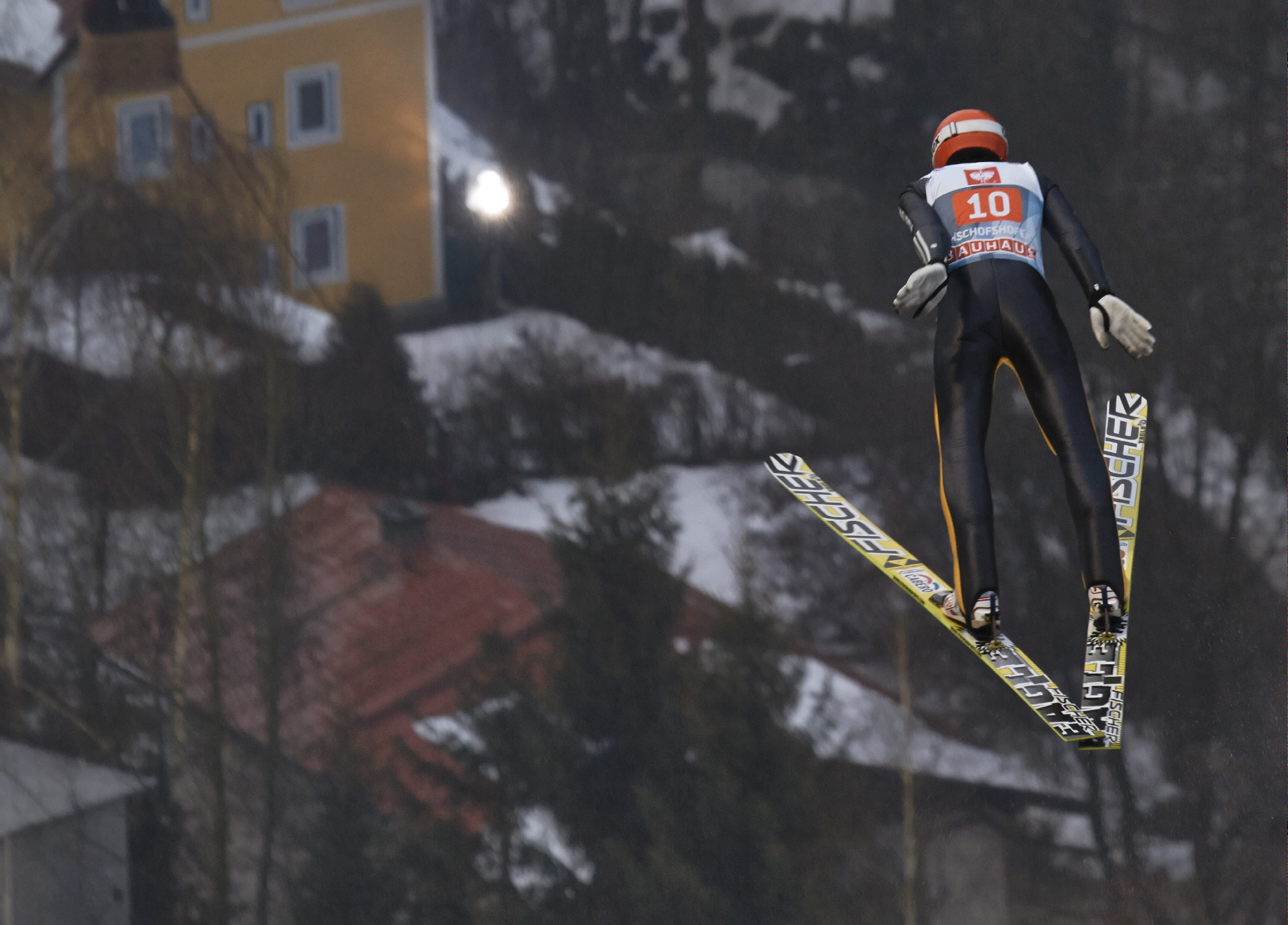 | Bildbeschreibung: Karle Geiger in Bischofshofen Foto: Neil Cook, OK Vierschanzentournee, Redaktionelle Verwendung erlaubt, Abdruck honorarfrei, Beleg an: Pressestelle Vierschanzentournee, Hemmerlestraße 4, 87700 Memmingen, Germany, Telefon 08331/9918850, presse@vierschanzentournee.com |