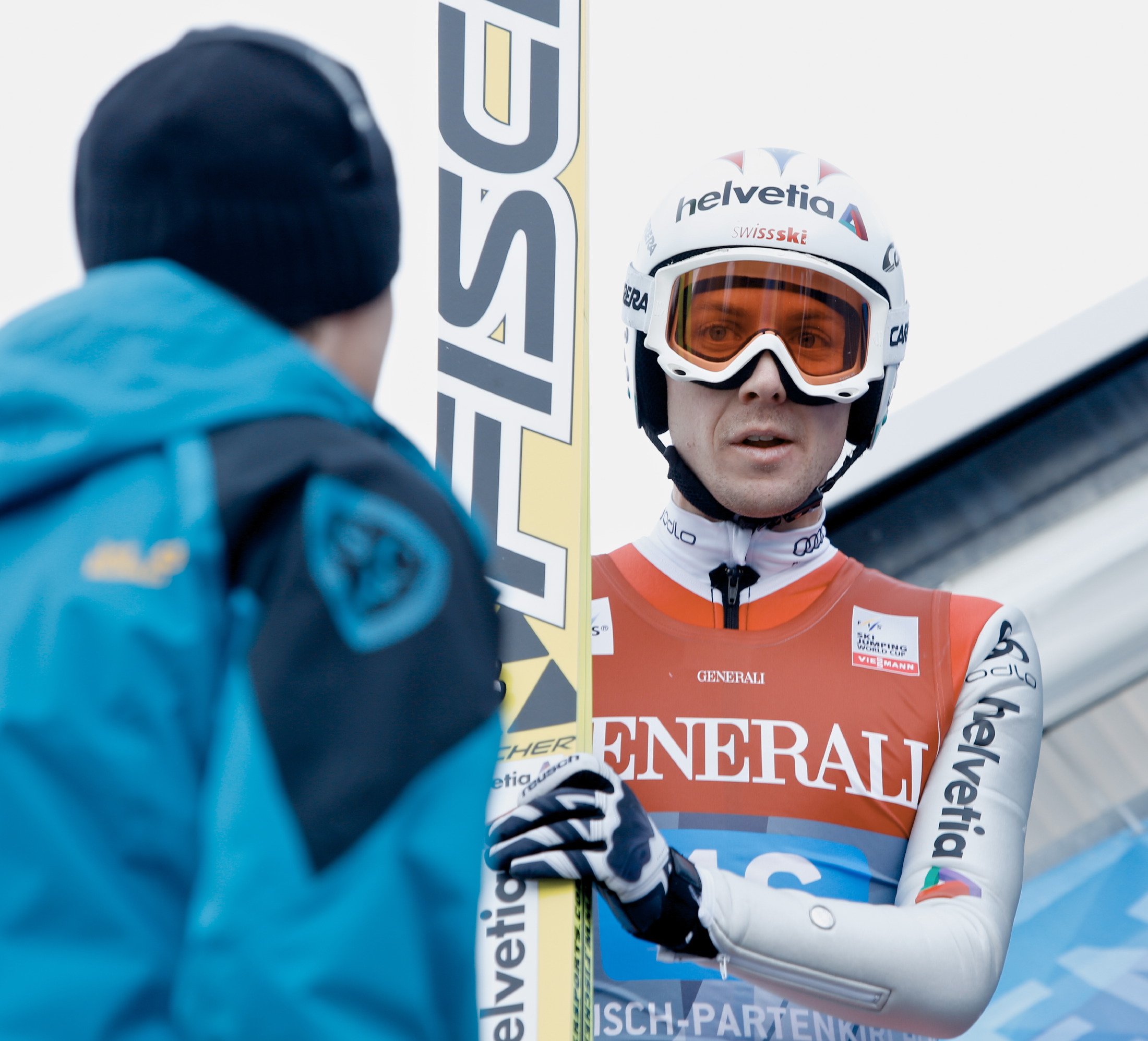 | Bildbeschreibung: Simon Ammann in Garmisch-Partenkirchen Foto: Ingo Jensen, OK Vierschanzentournee, Redaktionelle Verwendung erlaubt, Abdruck honorarfrei, Beleg an: Pressestelle Vierschanzentournee, Hemmerlestraße 4, 87700 Memmingen, Germany, Telefon 08331/9918850, presse@vierschanzentournee.com |