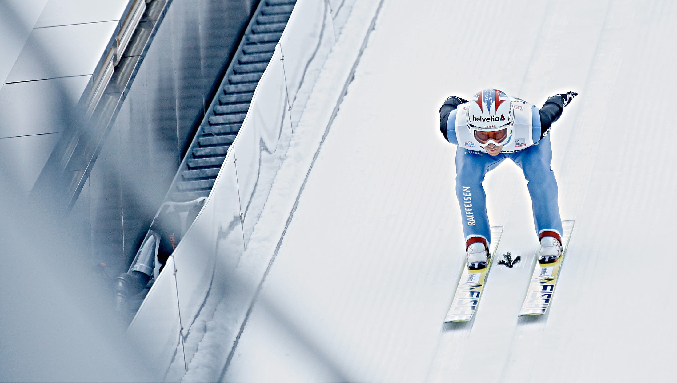 | Bildbeschreibung: Simon Ammann in Innsbruck Foto: Brigitte Waltl-Jensen, OK Vierschanzentournee, Redaktionelle Verwendung erlaubt, Abdruck honorarfrei, Beleg an: Pressestelle Vierschanzentournee, Hemmerlestraße 4, 87700 Memmingen, Germany, Telefon 08331/9918850, presse@vierschanzentournee.com |