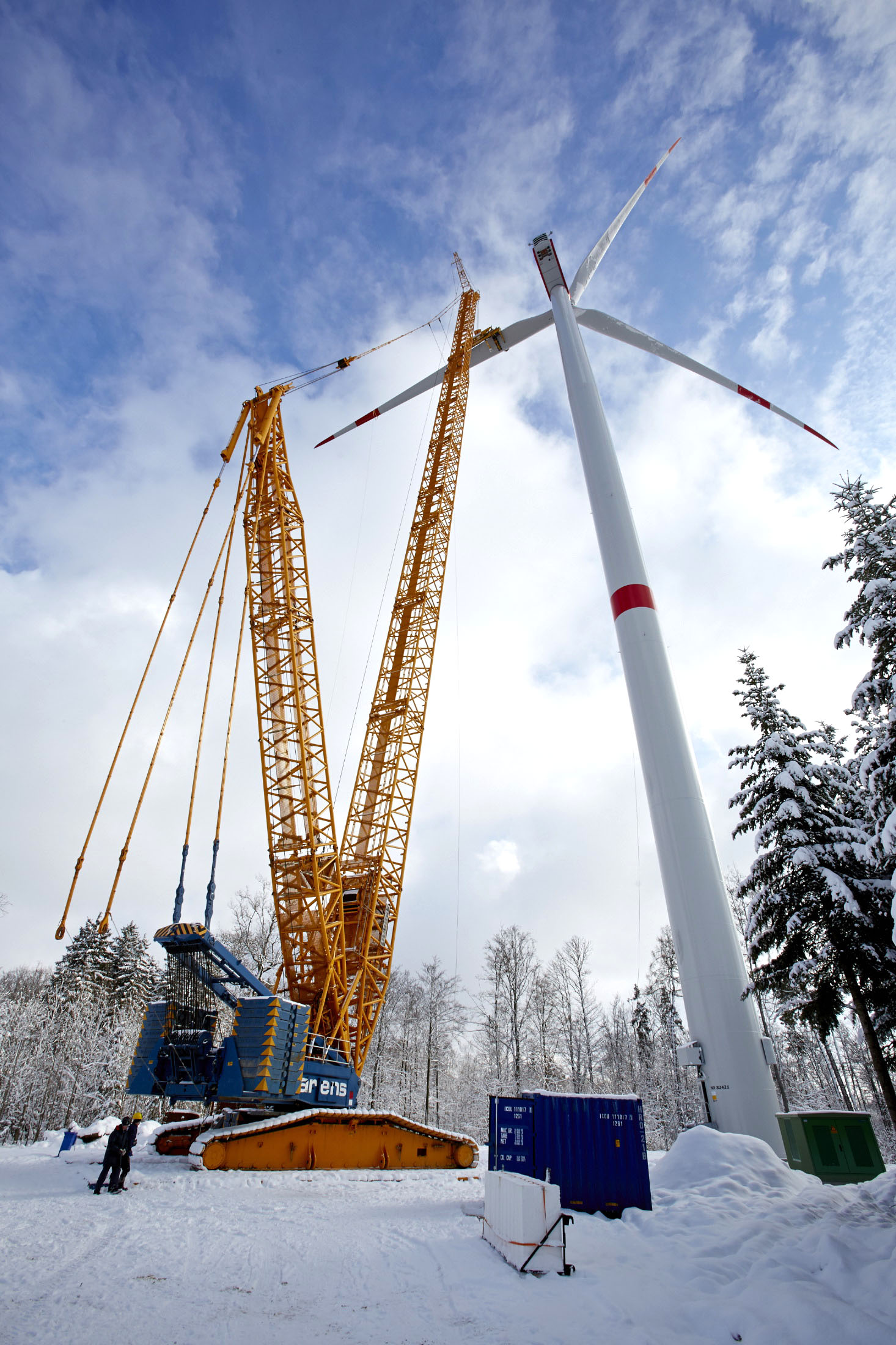 Bildbeschreibung: Windpark Zöschingen Die Montage der Windkraftanlagen im Windpark Zöschingen läuft auf Hochtouren. Foto: Vensol Redaktionelle Verwendung erlaubt, Abdruck honorarfrei, Beleg an: Jensen media, Hemmerlestraße 4, 87700 Memmingen, Telefon 08331/991880, info@jensen-media.de |