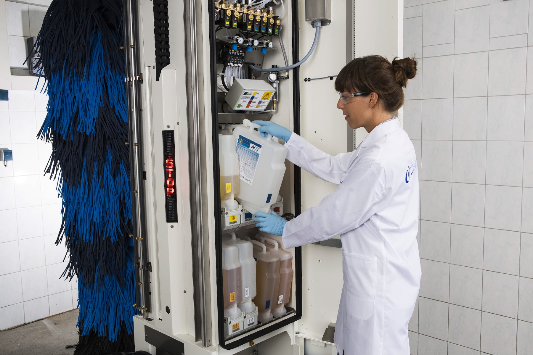 | Bildbeschreibung: Die Top-Innovation von WashTec, das neue Kartuschensystem Advanced Chemical System ACS, wurde erstmalig auf der Fachmesse „automechanika“ in Frankfurt präsentiert. Foto: WashTec Redaktionelle Verwendung erlaubt, Abdruck honorarfrei, Beleg an: Jensen media, Hemmerlestraße 4, 87700 Memmingen, Telefon 08331/991880, info@jensen-media.de |