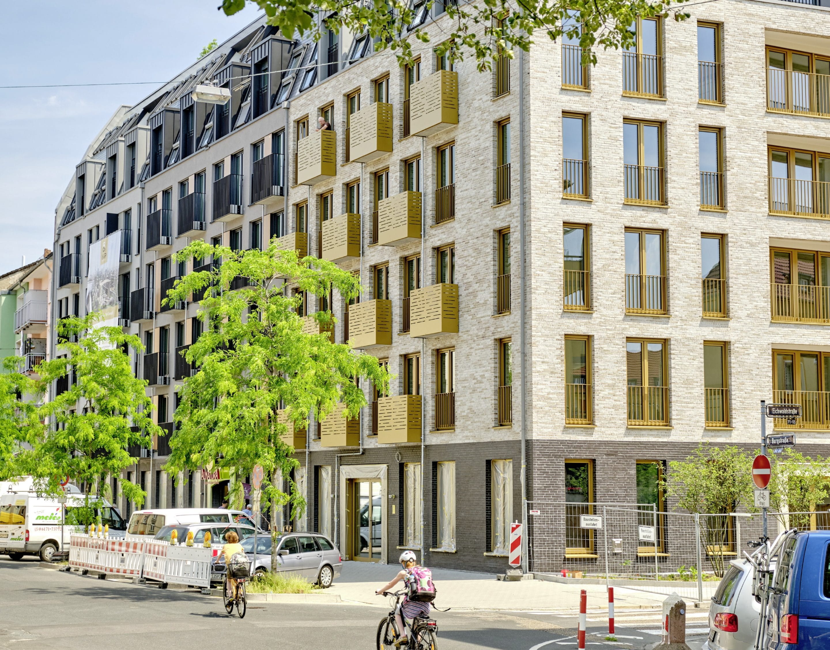 Auch die Übergänge im Fassadenbereich von Putz auf Riemchen stellten die Baubeteiligten vor die eine oder andere Herausforderung. „Wir haben dazu die passenden WDVS-Anputzleisten und Putzprofile von Protektor oder APU genutzt. Für Eckverfugungen und Fensterbankbordprofile haben wir UV- und witterungsbeständige Hybriddichtstoffe verwendet“, sagt Amend. Ähnliches galt für die Montage der zahlreichen französischen Balkone oder den schlagregendichten Anschluss der Blechgesimse an Putz und Riemchen. „Hier haben wir darauf geachtet, dass etwaige Verformungen und temperarturbedingte Längenänderungen ausgeglichen werden können“, so Amend.
