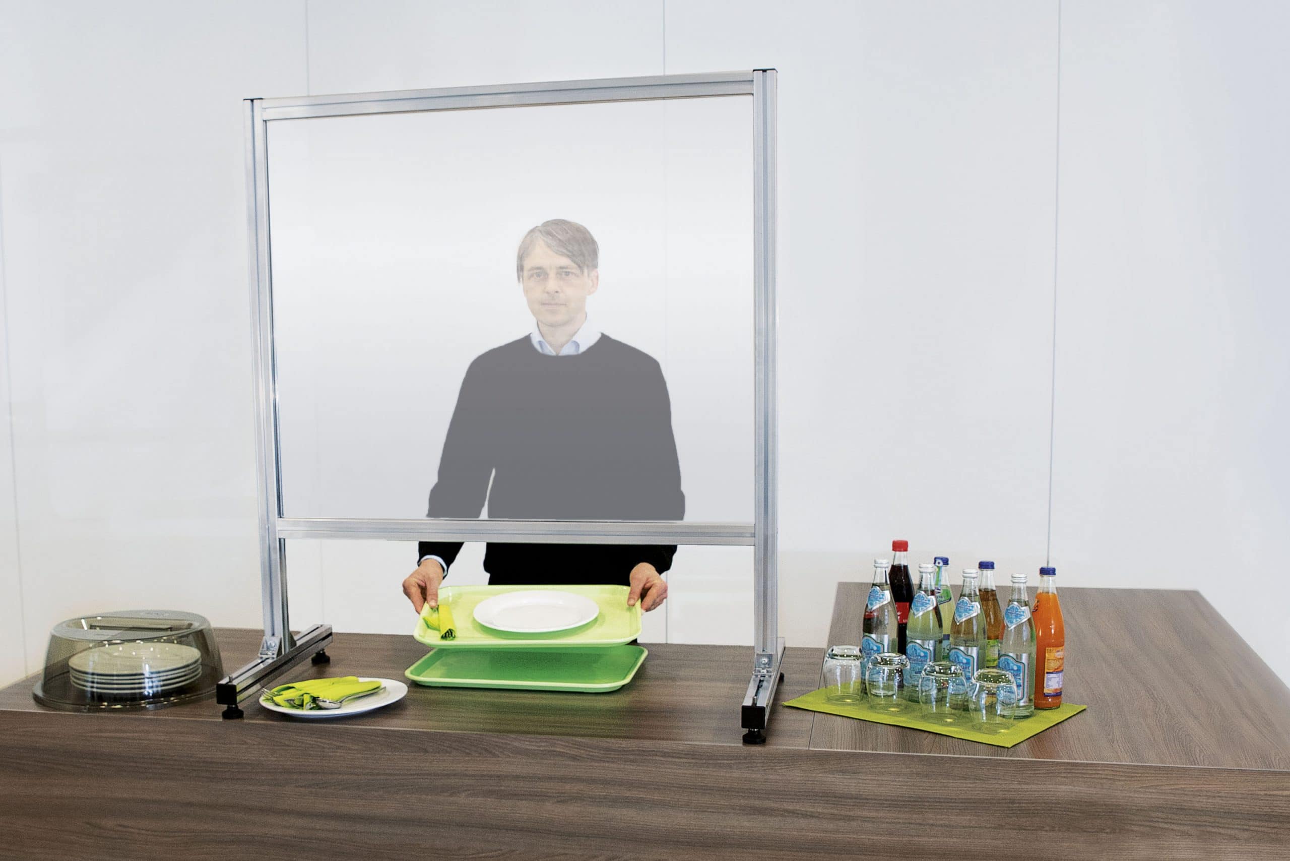 Die neuen Trennwände seines Unternehmens sind zwar kein Ersatz für die notwendigen Hygienemaßnahmen, sie schaffen aber Distanz, unterstützen so den Infektionsschutz im Kontakt zu anderen Menschen und senken die Ansteckungsgefahr durch Niesen, Husten und Speichel-Tröpfchen des Gegenübers. Die Aufsteller helfen zum Beispiel an Verkaufs- und Beratungstheken, an Essensausgaben, in Eingangsbereichen und Rezeptionen oder auch an Büroarbeitsplätzen dabei, Abstand zu Mitmenschen zu halten. Und das, ohne die Arbeitsabläufe zu behindern. Sie sind mit klaren Plexiglasschreiben ausgestattet und dort, wo es erforderlich ist, sorgen Durchreichen dafür, dass Unterlagen, Waren sowie andere Gegenstände mühelos ausgetauscht werden können. Die Trennwände sind als mobile Aufsteller, als freistehende oder auch als stationäre Lösungen erhältlich. Letztere werden von dem Qualitätshersteller aus Bayern nach Maß gefertigt und individuell an die räumlichen Begebenheiten angepasst.