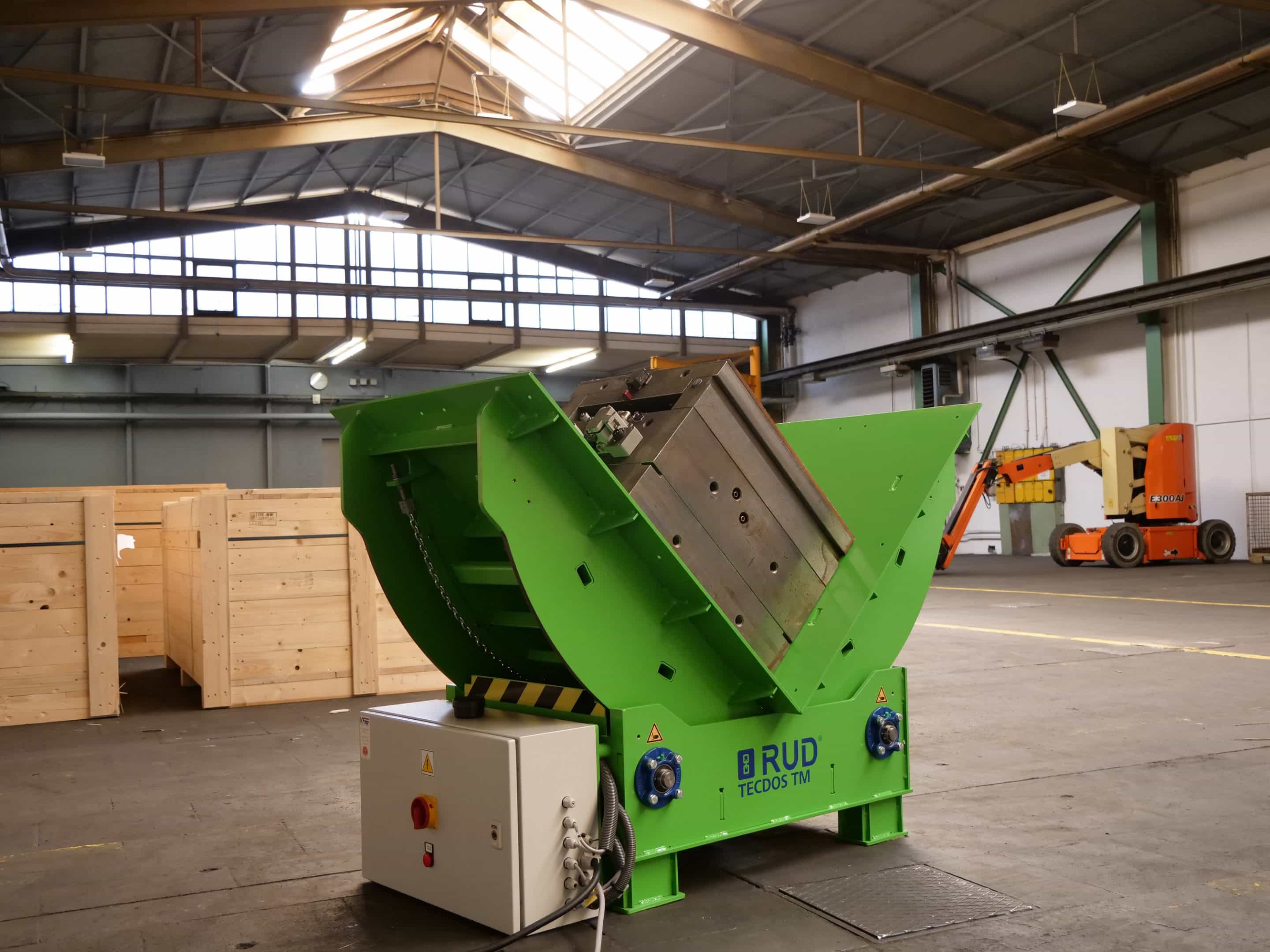 Der neue RUD Tecdos TM 08/10-5 ist die jüngste RUD-Innovation aus der Sparte Mold Handling Solutions. Die „kleine Variante“ des bewährten Werkzeugwenders RUD Tecdos TM nimmt auf der 80 x 100 cm großen Tischfläche Spritzgusswerkzeuge mit einem Gewicht von bis zu fünf Tonnen auf und wendet sie sanft und sicher. Der Werkzeugwender ist die Lösung für das Werkzeughandling in der Spritzgussindustrie und dank seiner kompakten Aufstellmaße von ca. 140 x 80 cm x 100 cm flexibel im Betrieb einsetzbar.